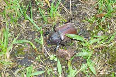 昨晩子どもたちに若干なぶり者にされていたカブトムシ(メス)。