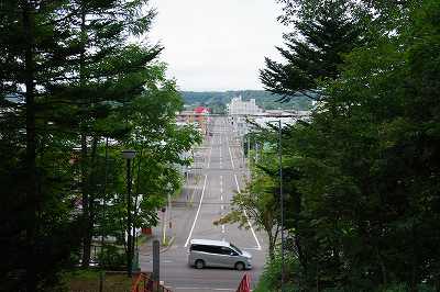 階段の途中で振り返ると国道を超えたビジネスホテルの辺りまで見える。