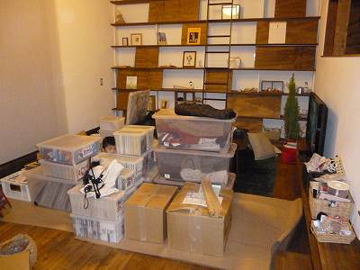 行き場の分からない荷物はリビングに置いて貰った。