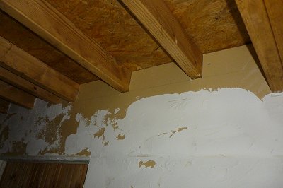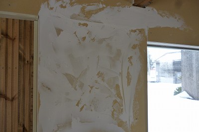 最初に必要な作業はビスやボードの継ぎ目を埋める作業だ。