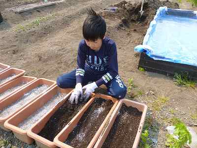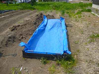 今年はこのプランターに苦土石灰、化成肥料、鶏糞を混ぜ合わせ、