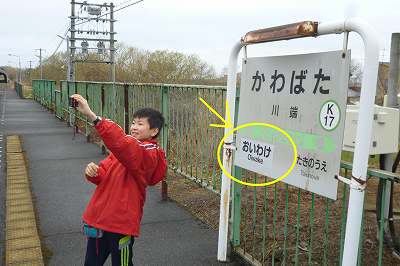 よ~く見ると川端駅の駅看板に直した跡があった。