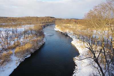 標津川がゆっくり流れている。