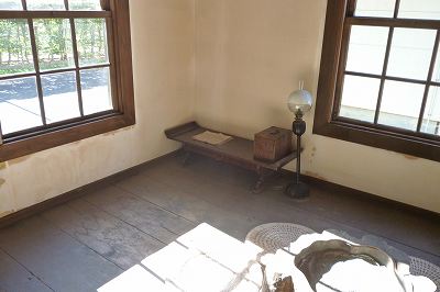 中にある机や窓ガラスは当時の物との説明があった。